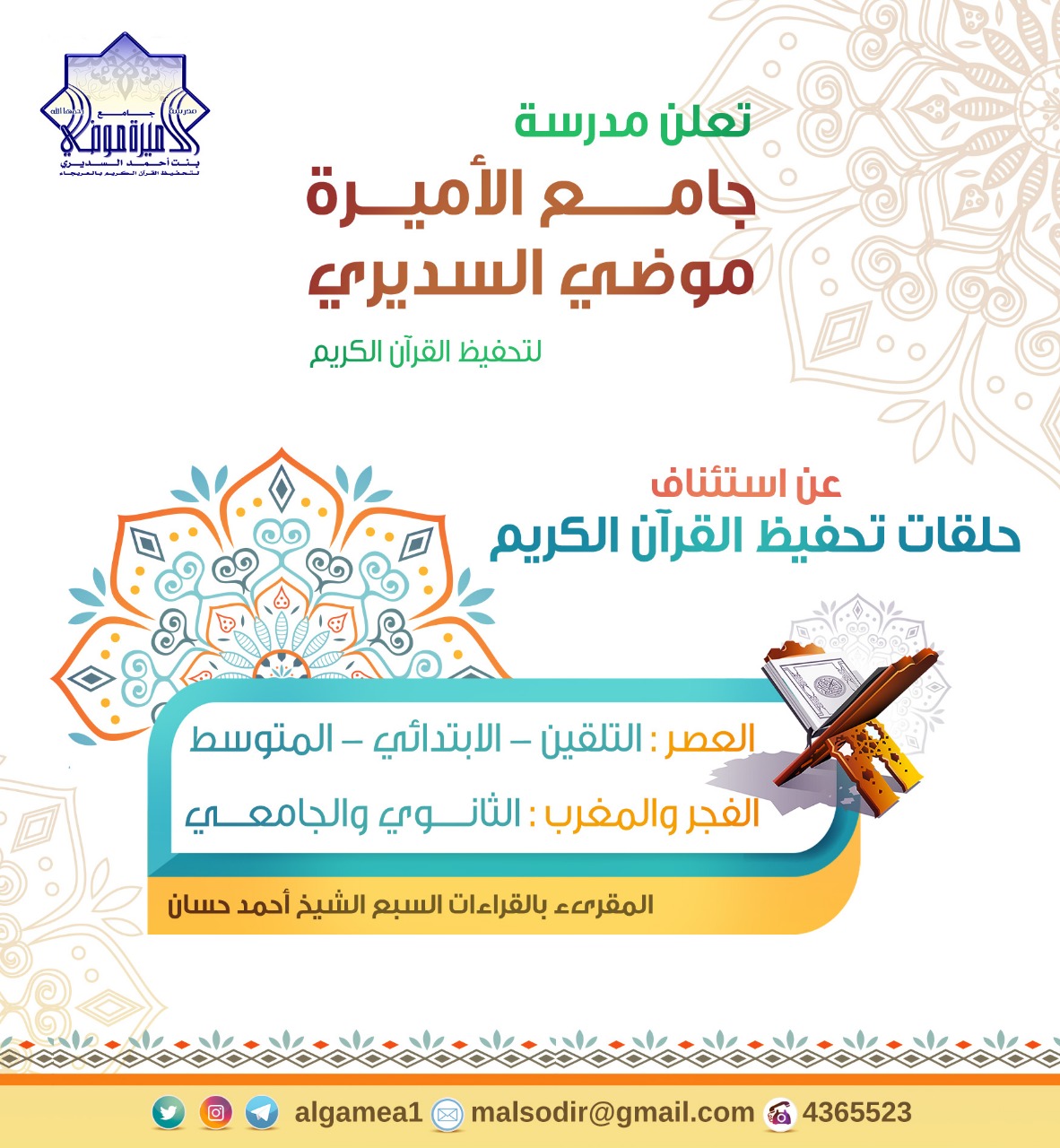 استئناف حلقات تحفيظ القرآن بجامع موضي السديري العريجاء