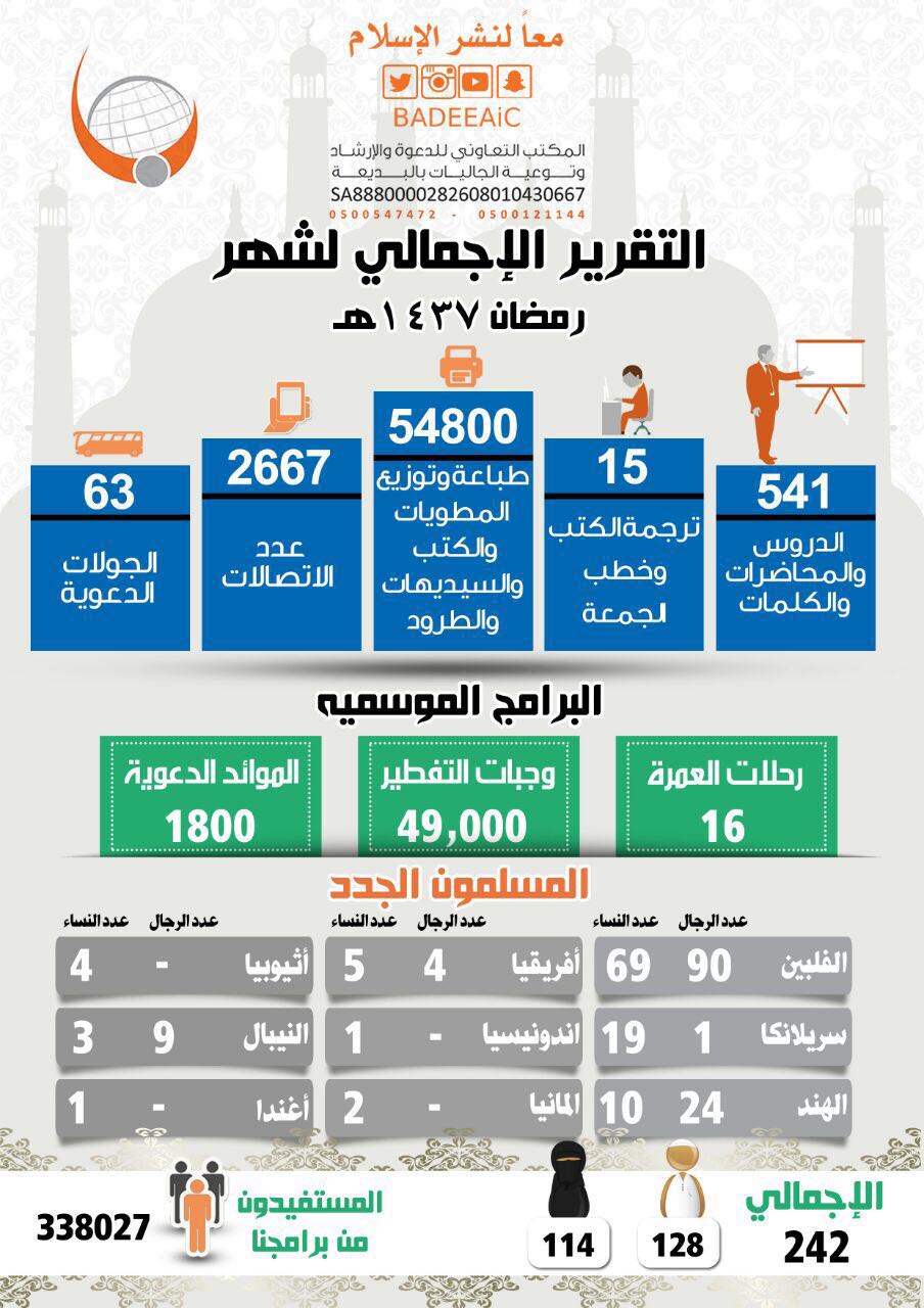 “دعوي البديعة” بالرياض يعلن إسلام 242 شخصاً خلال شهر رمضان